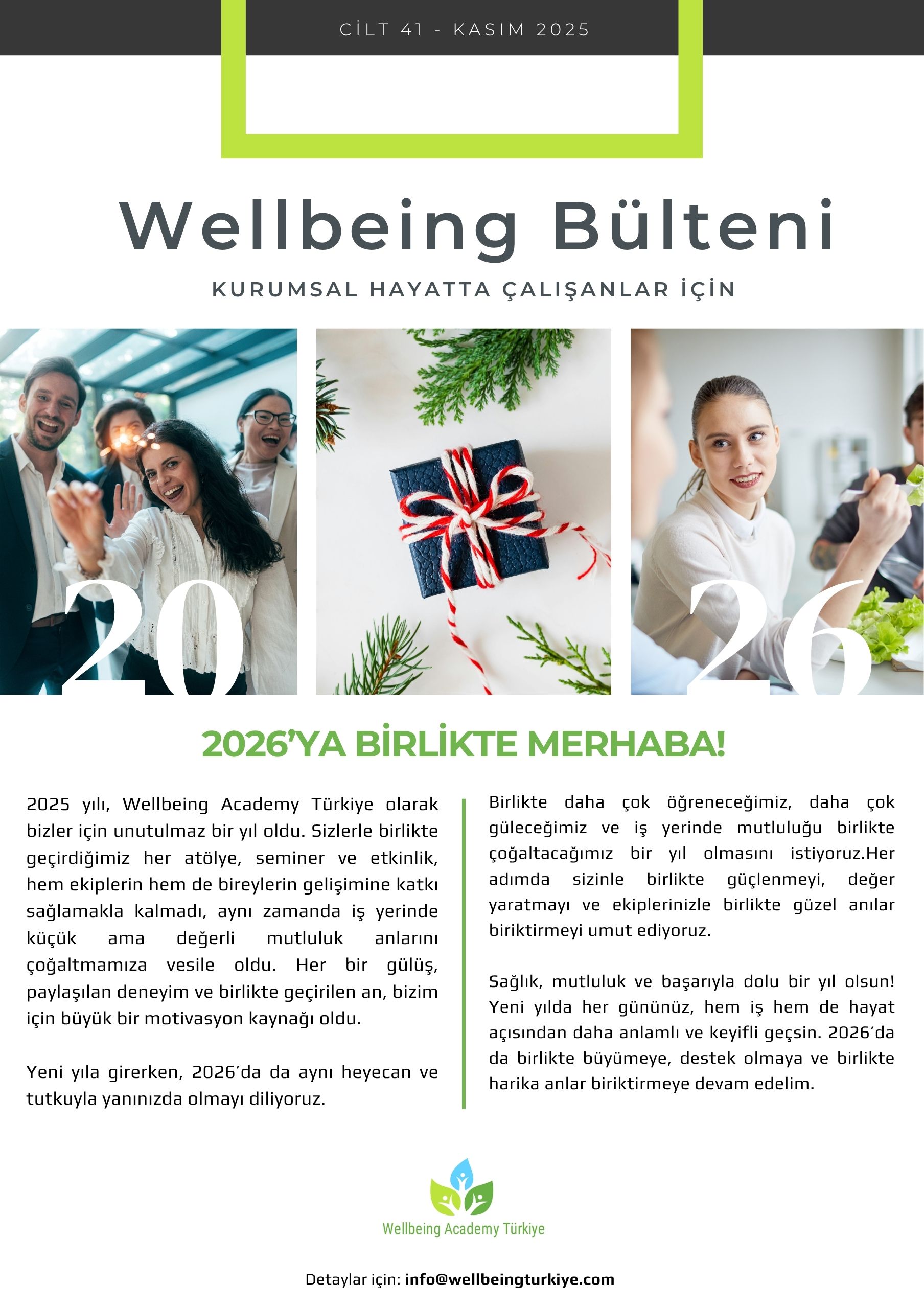 Wellbeing Academy Türkiye olarak çalışanlarınızın konsantrasyon becerilerini geliştiren, verimliliğini artıran, inovasyona ve pozitif düşünceye yönelten, stres yönetimi ve işbirliği yaparak beden ve zihin farkındalığı ile başarılı olmaları için ilham, enerji ve motivasyon sağlayan Wellbeing Programlarını iş süreçlerinize dahil ediyoruz.